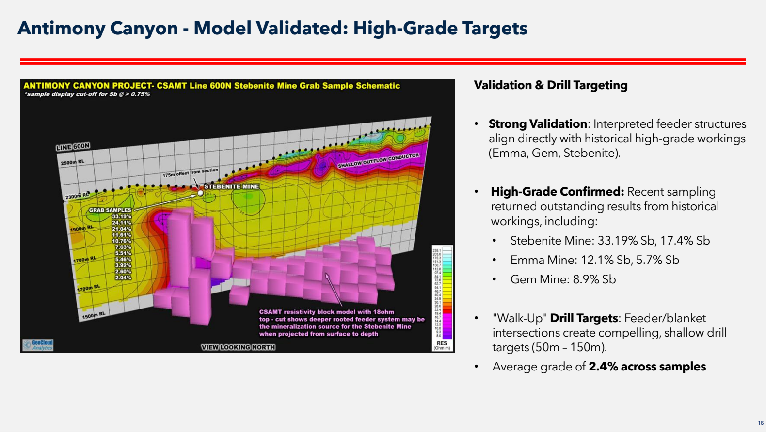 Trigg Minerals has quietly assembled one of the most compelling dual critical minerals portfolios in North America. Their flagship Antimony Canyon Project in Utah contains the largest and highest-grade antimony deposit in the United States - we’re talking about 49 unpatented lode mining claims with historical exploration showing peak assays of 33% antimony.